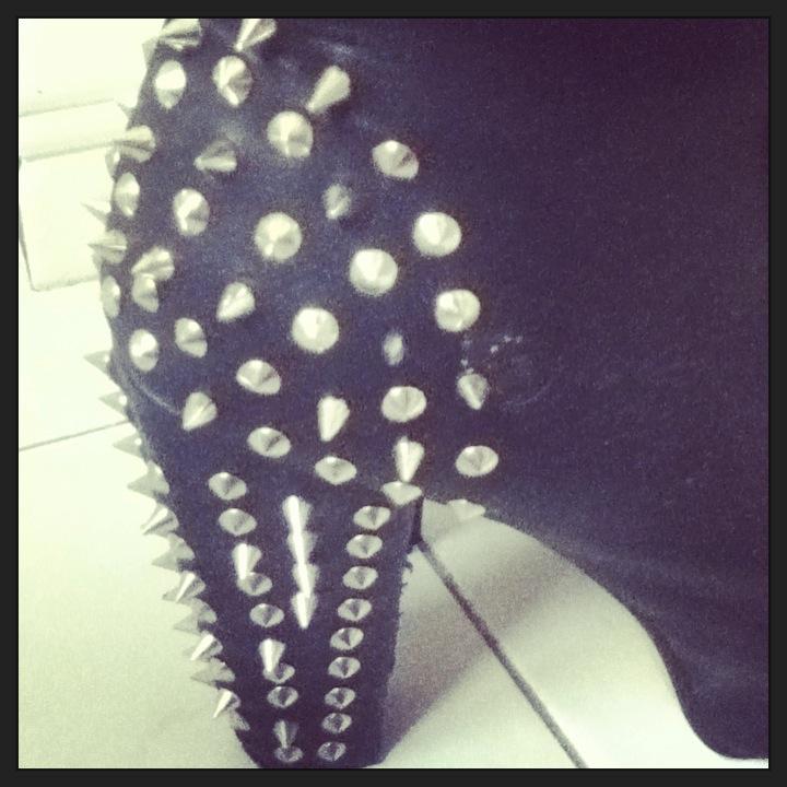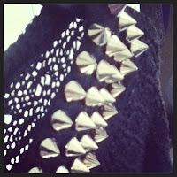 Okay so I'm a bit late on the bandwagon on this one but am I the only one not getting bored of spikes and studs yet? No? Good..... Even though it's coming into Spring, it's still pretty cold in Ireland, or at least where I am anyway, I'm still loving all thing's leather, spiked and studded.... My favorite spiked accessory at the minute has to be my leather spiked heeled boots These bad boys, as dangerous as they are are the most comfortable thing shoe I own! I can wear them all night without a bother to my feet and because their black I feel like they can go with anything! I purchased them spur of the moment on a shopping trip with my lovely friend Aislinn, and I've never looked back! They were €55 in Sugababe, on Henry St, in Dublin.